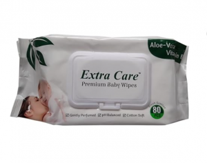 Extra Care Premium Baby Wipes Aloe Vera Cotton Soft pH Balanced 80 Pieces