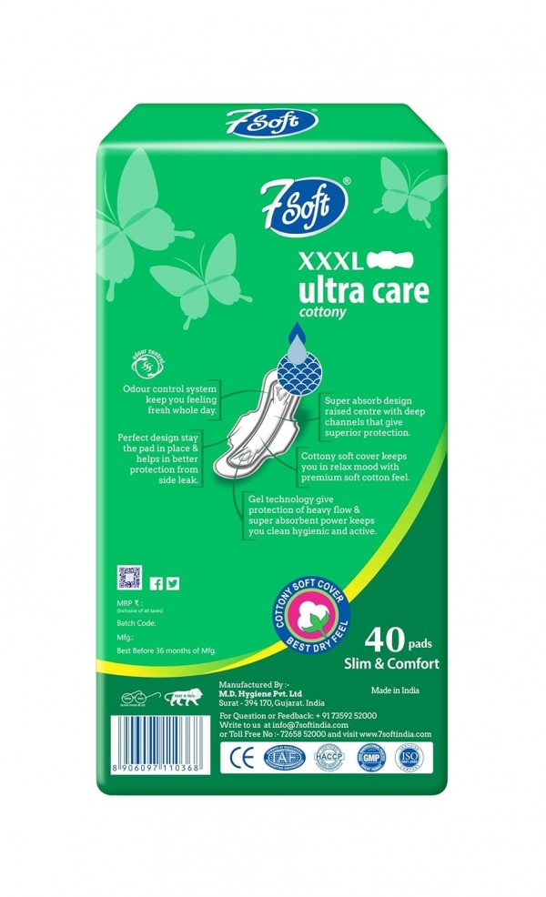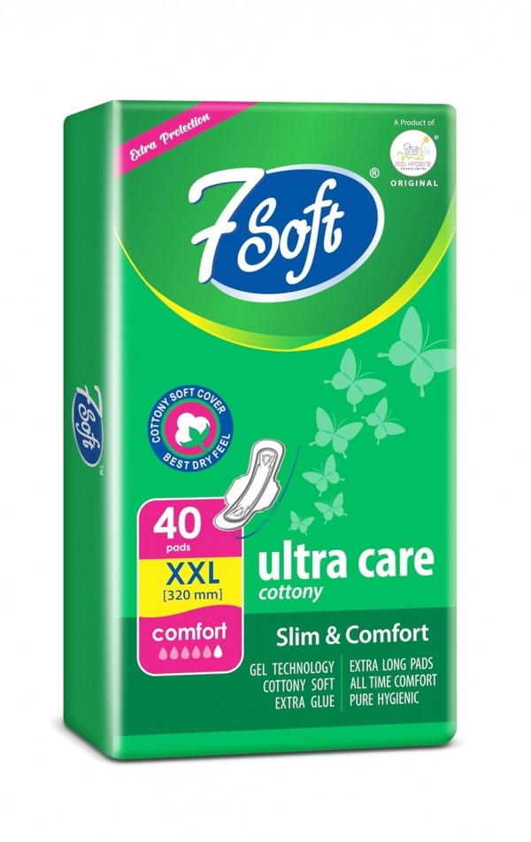 7 Soft (PACK OF 40) Ultra Care XXL Cottony Comfort Sanitary Pads with Wings - 40 Count Pack Extra Protection for Heavy Flow Breathable and Soft Material Ideal for...