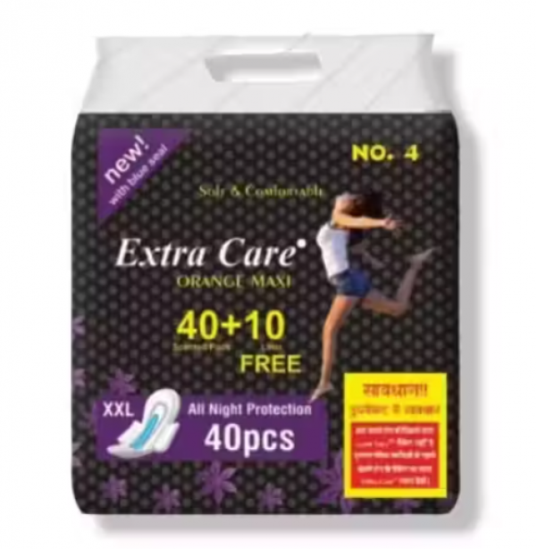 Extra Care Orange Maxi Sanitary Pads XXL With Pantylinears All Night And Day Protection 100% Leakage Proof Sanitary Napkins (40 Pads 10 Pantylinears) (Pack Of 1)